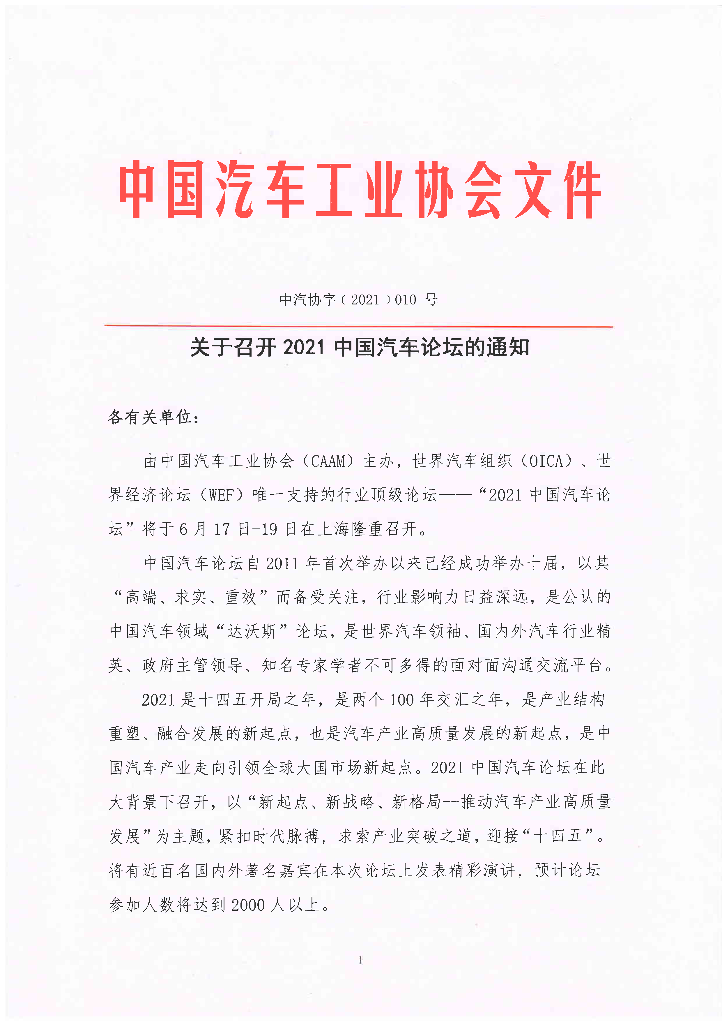 关于召开2021年中国汽车论坛的通知